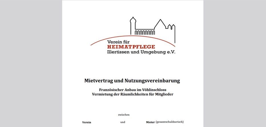 Der Verein Heimatpflege Illertissen und Umgebung e.V. vermietet die Räumlichkeiten des Französischen Anbaus für Mitglieder zu folgenden Zwecken:
