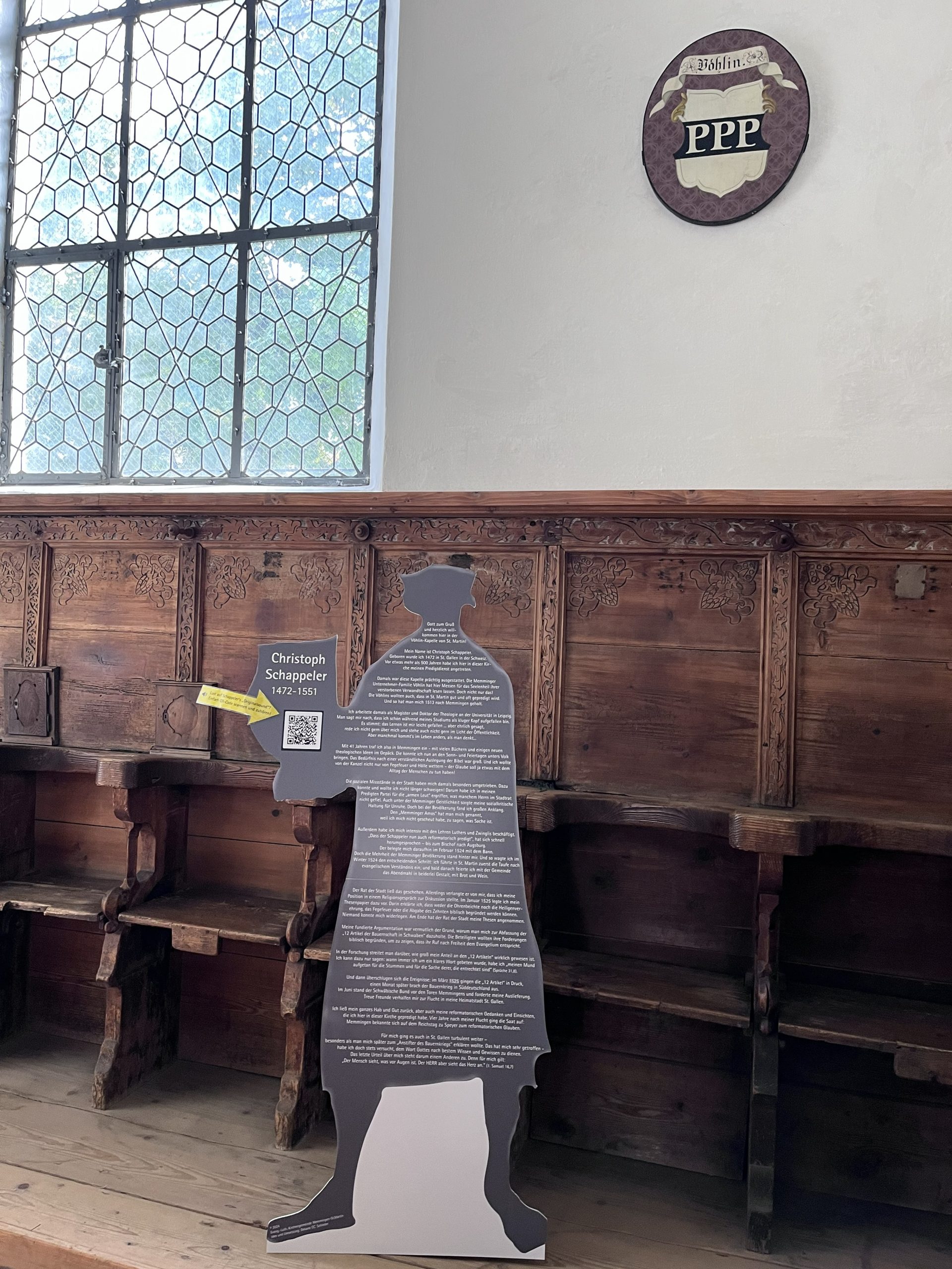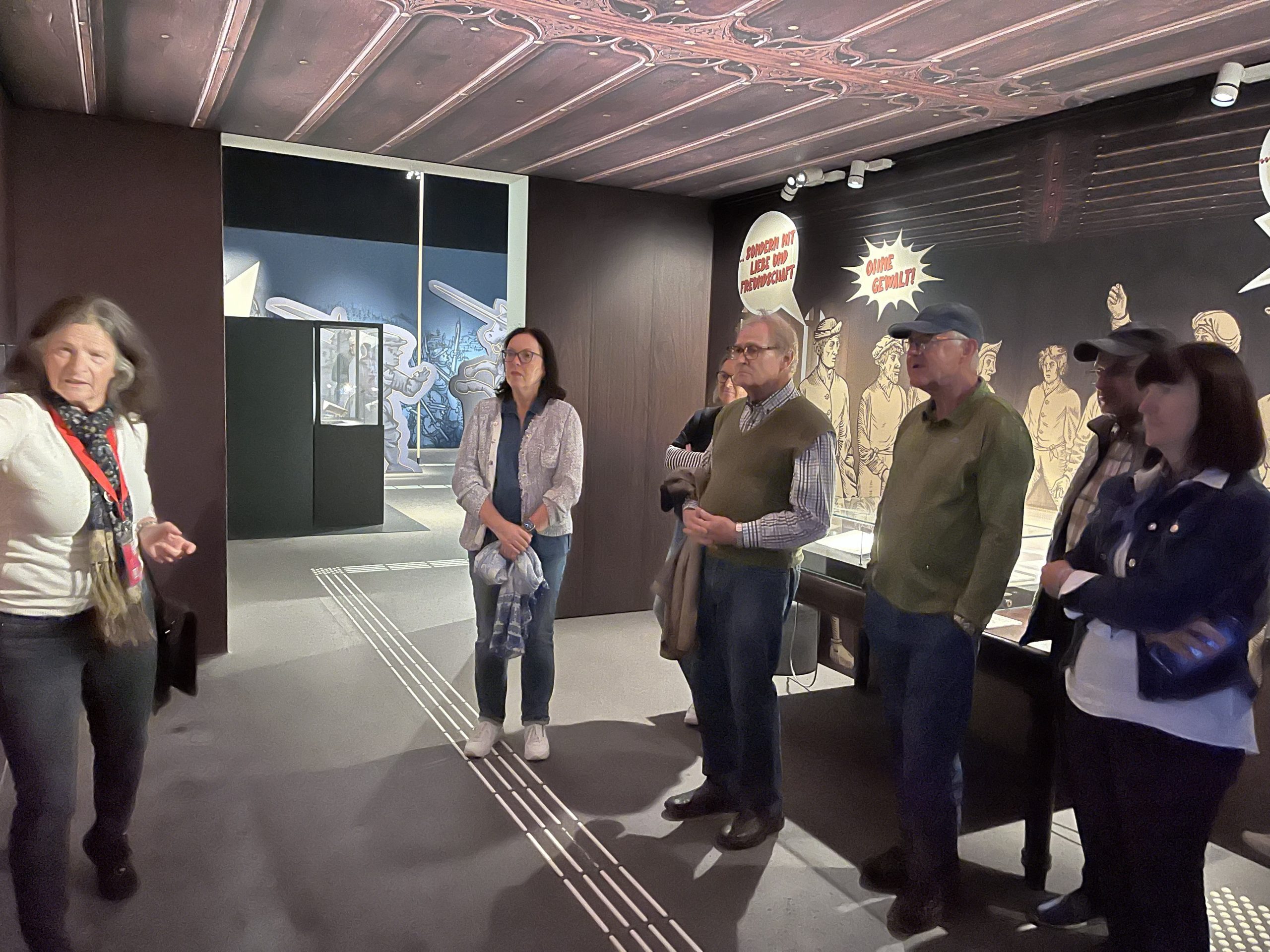 Am 26.09.2025 starteten eine Handvoll Interessierter mit dem Regionalzug nach Memmingen mit dem Ziel Dietrich-Bonhoeffer-Haus. Dort erwartete uns eine Führung durch die Ausstellung „Projekt Freiheit – Memmingen 1525“. Memmingen beging in diesem Jahr den 500. Jahrestag der „12 Artikel“, in denen die Bauern im März 1525 kundtaten, ihre repressiven Lebensumstände nicht mehr hinnehmen zu wollen. Sie formulierten darin die Forderung „dass wir frei sind und sein wollen“. Im Anschluss besuchten wir noch die St. Martinskirche, in der ab 1524 der Schweizer Reformator Christoph Schappeler als Prediger tätig war und seinen Teil an der Erklärung vielleicht beigetragen hat. Schließlich durften wir noch im Haus der Kramerzunft in dem ehemaligen Raum, in dem die zwölf Artikel verkündet wurden, einer multimedialen Inszenierung der damaligen Ereignisse beiwohnen.